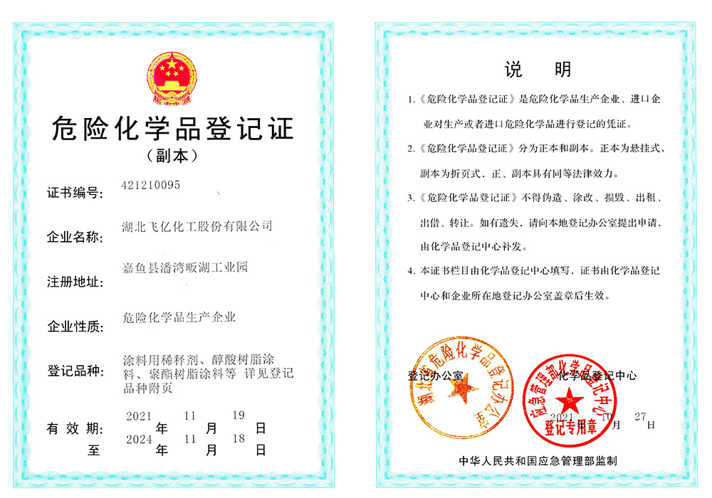 湖北飛億化工股份有限公司成立于2005年,專業(yè)從事各種油漆涂料稀釋劑的生產(chǎn)批發(fā),經(jīng)過公司全體員工的多年拼搏與努力,本著客戶至上、誠信至上、質(zhì)量至上的三上原則和高素質(zhì)、高效率、高品質(zhì)的三高理念,公司在木器稀釋劑行業(yè)中取得了不菲的成績。在公司以批發(fā)為主的行銷原則下,在湖北、湖南、浙江、山東、山西、陜西、江西、貴州、廣西、廣東、安徽、河南、河北、江蘇、甘肅、青海、西藏、新疆等地建立了良好和健康的銷售網(wǎng)絡(luò)。湖北飛億化工股份有限公司以人為本、倡導(dǎo)學(xué)習(xí)。經(jīng)過多年的凝聚和歷練,公司擁有豐富實踐經(jīng)驗的技術(shù)人員和銷售、生產(chǎn)的團隊,不斷研發(fā)適合市場和客戶的高質(zhì)量產(chǎn)品。并努力爭取各項產(chǎn)品和服務(wù)達到客戶滿意。為滿足市場和客戶要求,湖北飛億化工股份有限公司于2013年投資興建了占地30000平方的集生產(chǎn)、檢測、庫存于一體的現(xiàn)代化生產(chǎn)基地,公司熱忱歡迎有志之士與我們共同成長、共同壯大和共同發(fā)展。